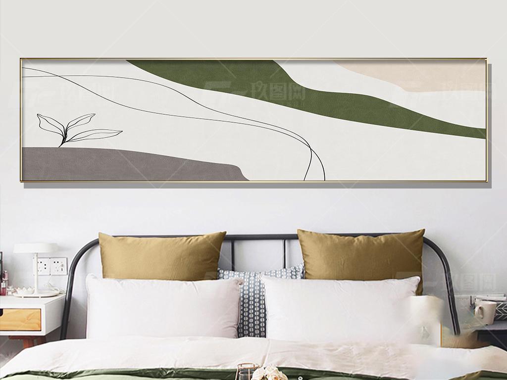 北欧现代简约轻奢抽象几何线条祖母绿床头装饰画
